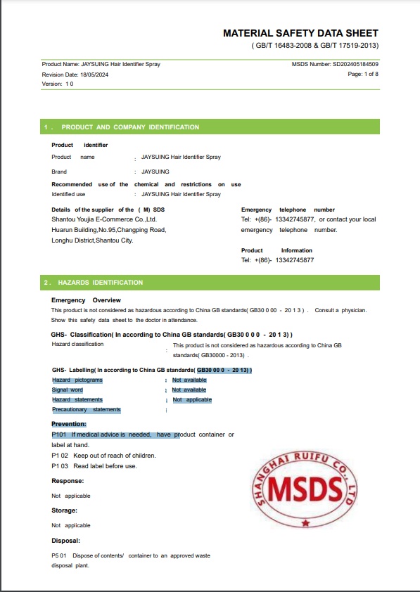 • 【Effect Description】:Hair Identifier Spray creates cool skin that reduces friction