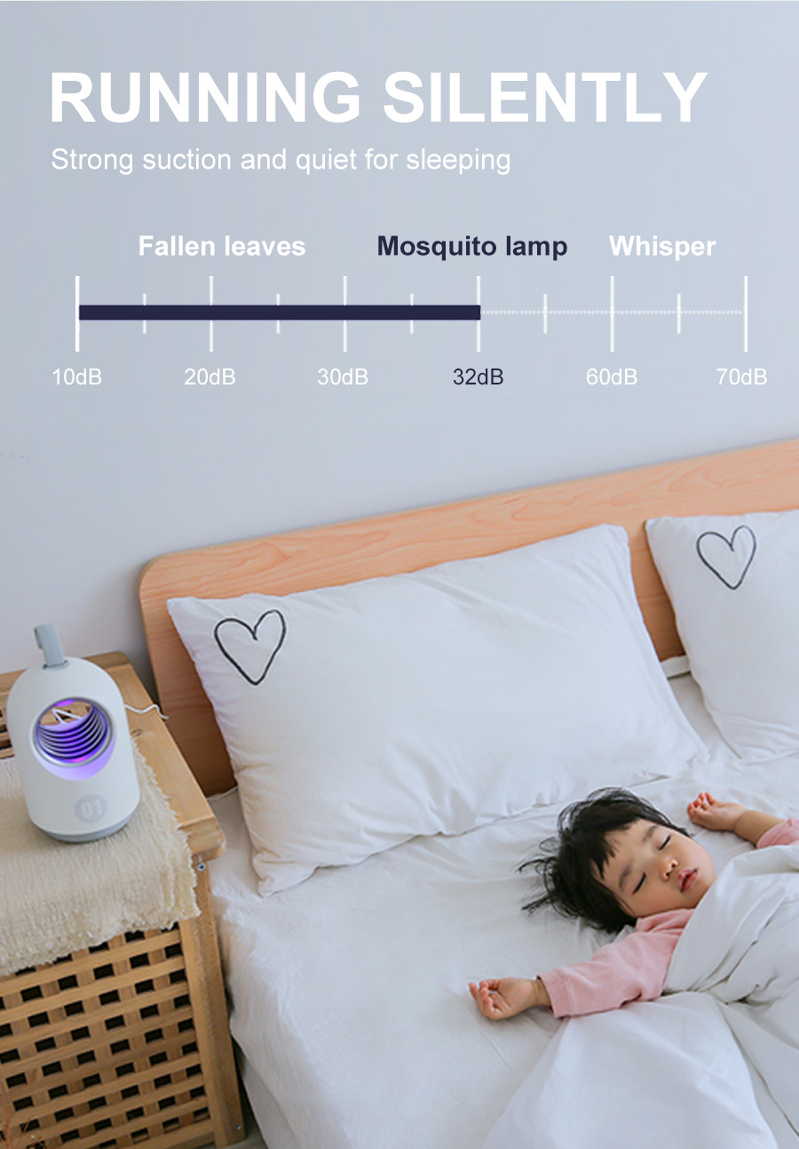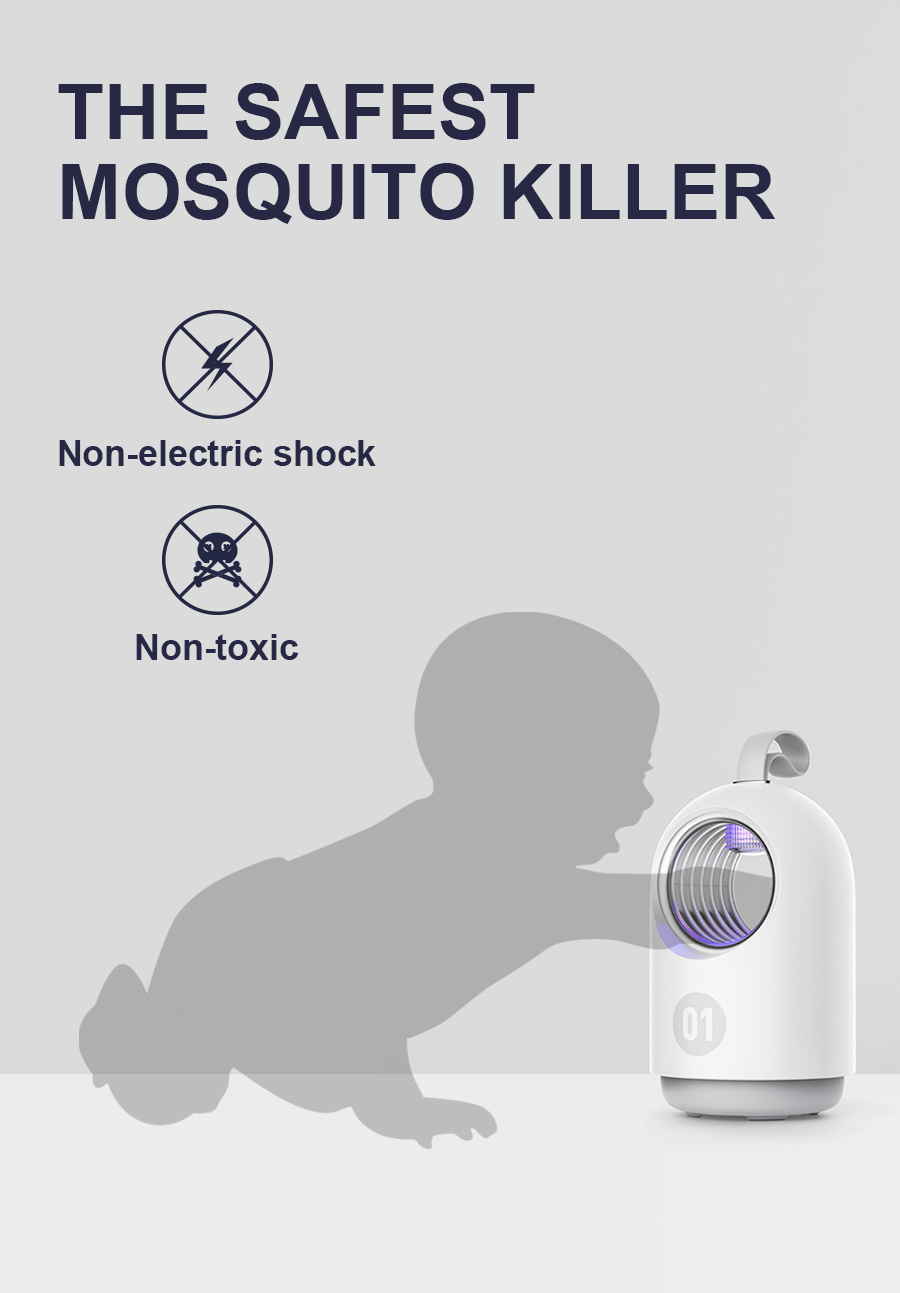【Safe for Babies】 strong suction fan that inhales the mosquito in the killer lamp. No poisons, no smell, no harmful chemicals, cleanliness and health