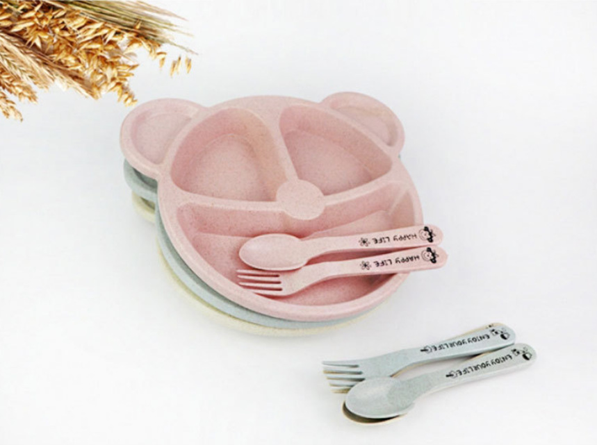 Wheat Split Bear Children’s Dinner Plate Set Creative Household Tableware Baby Split Plate Breakfast Plate Free Fork Spoon